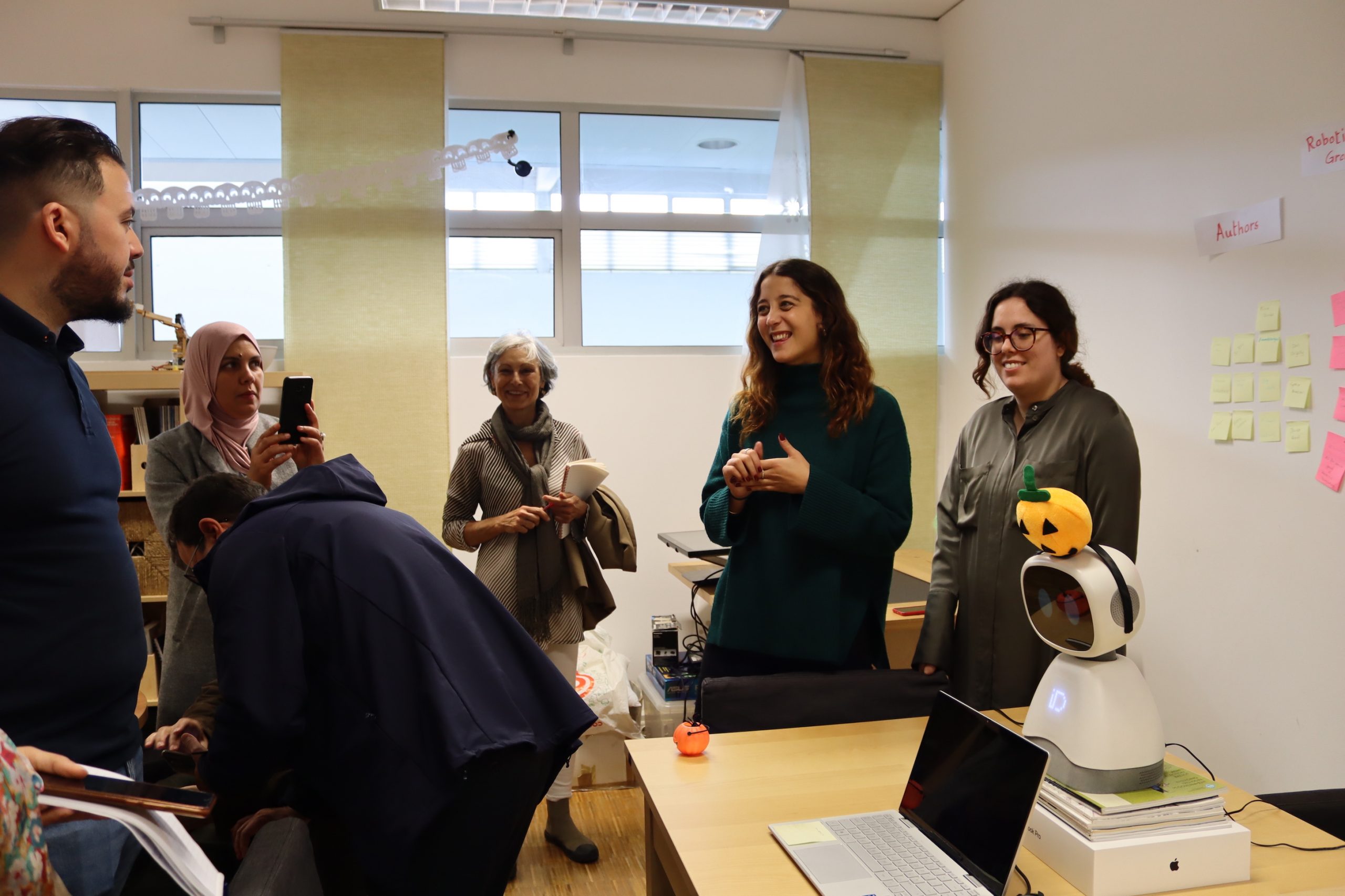 The session was followed by a visit to the INESC ID Social Robotics Laboratory led by Ali Kordia. The Group of AI for People and Society, also known as GAIPS Lab, conducts research on Artificial Intelligence over five main areas: Affective Computing, Games, Intelligent Virtual Agents, Social Robotics, and Simulation of Complex Systems. During the visit the group presented several demonstrations with robots which help humans in various day-to-day tasks. For example, Astro robot was designed and programmed to stimulate activities to help children with autism spectrum disorders.