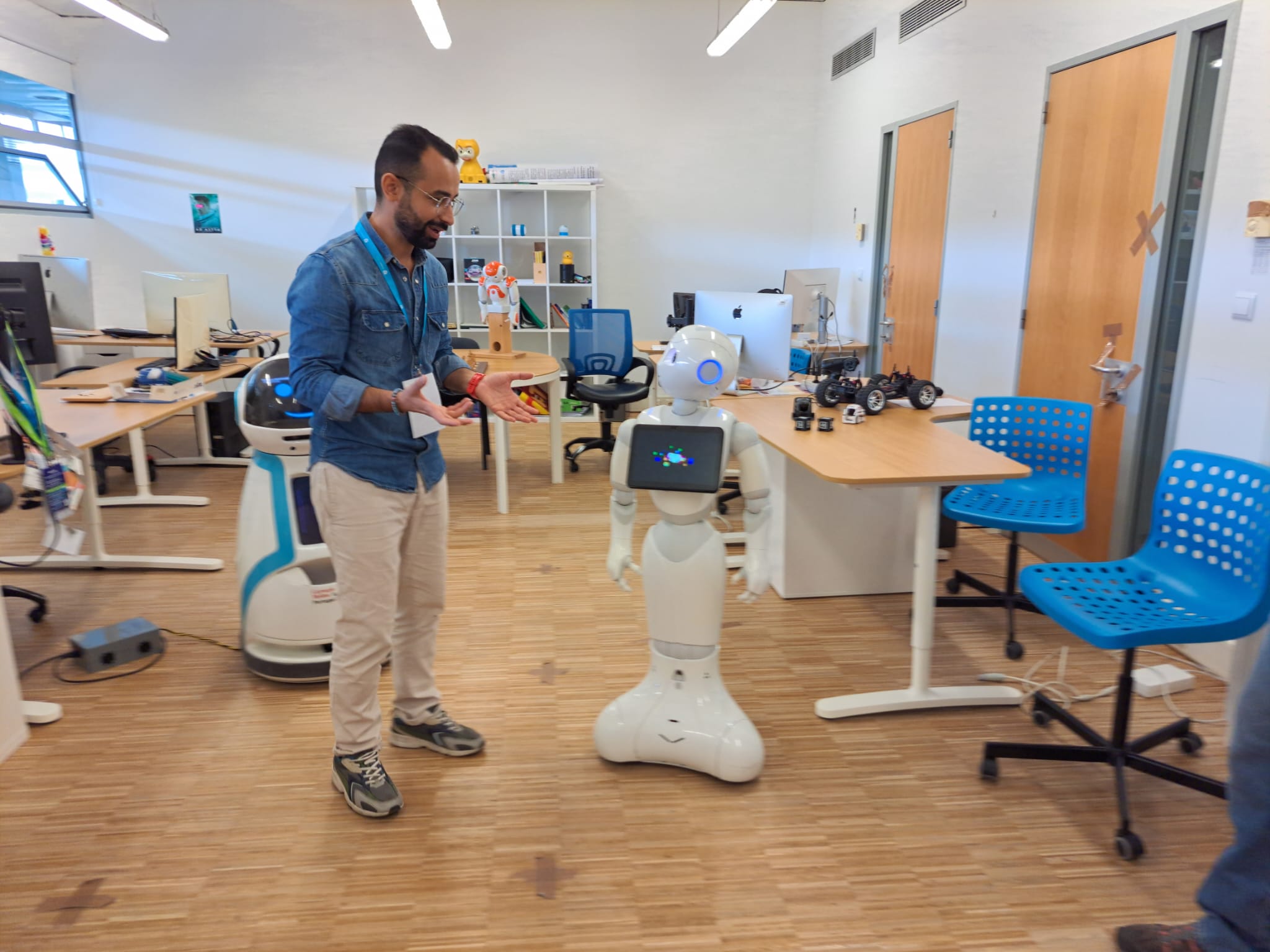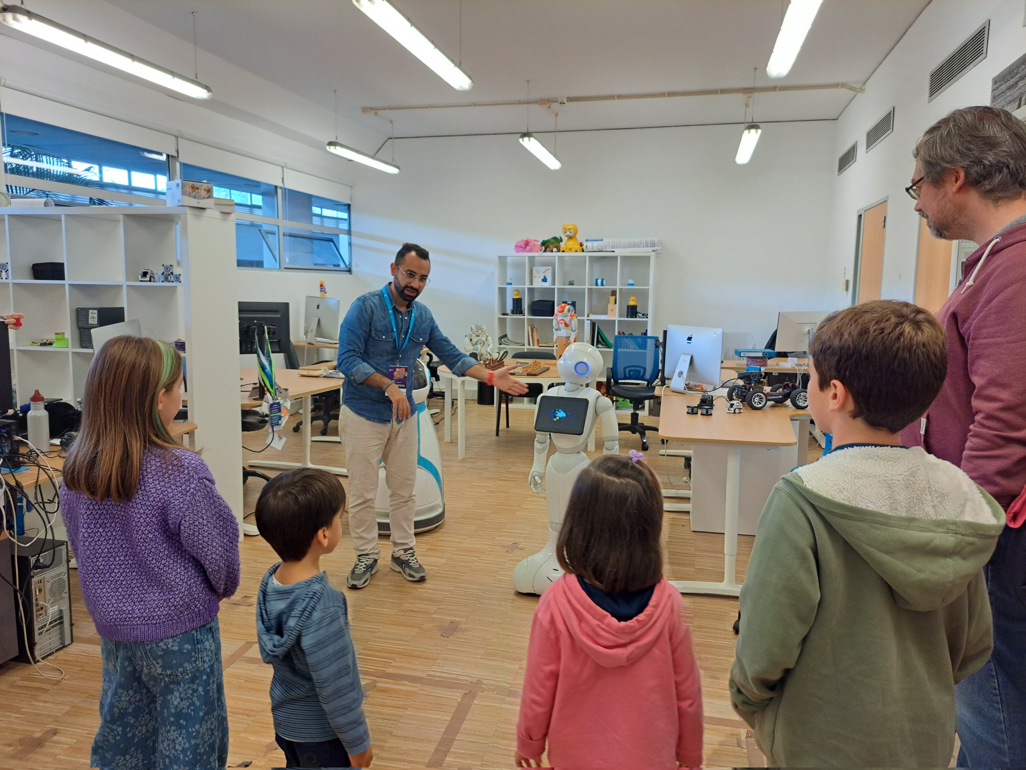 Throughout the day, the GAIPS LAB (Research Group on AI for People and Society) warmly welcomed visitors, offering them a unique chance to meet robots such as Pepper, ASTRO, and others. Social robots can simulate human-like behaviors, interact with humans, and even give the illusion of life. Under the guidance of INESC ID researcher Ali Kordia, attendees had the opportunity to interact with the robots, who can perform tasks such as playing games with children, dancing, or even support elderly people in daily tasks.  This event provided a distinctive chance for both children and adults to spend time with these amazing robots.
