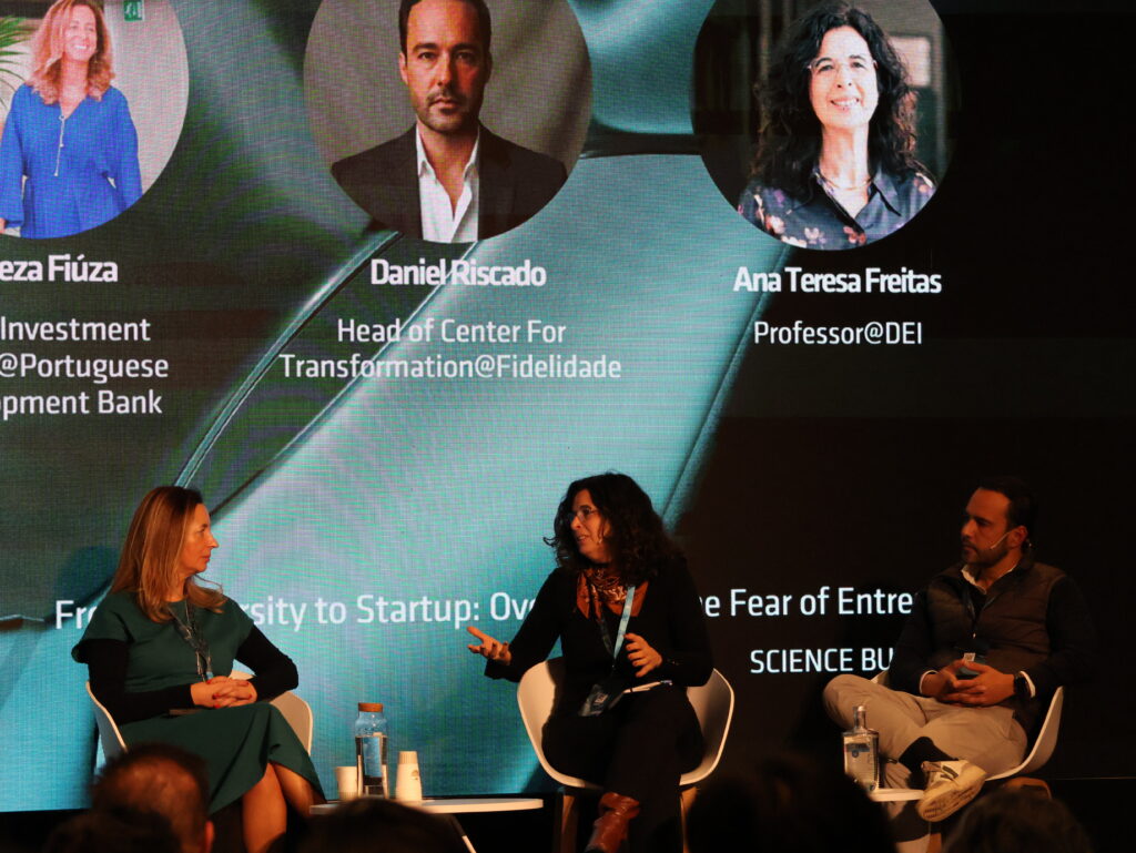 On the other side, the main stage also featured INESC-ID. Arlindo Oliveira, INESC-ID researcher and INESC President, moderated the session “Innovation Policy, Funding and Competitiveness: from Research to Impact” in which the need to transform public and private investment into tangible results was discussed with panelists including Pedro Dominguinhos, President of the National Monitoring Committee (CNA) of the Recovery and Resilience Plan. During the evening, INESC-ID researcher Ana Teresa Freitas was also part of a roundtable to discuss entrepreneurship and the challenges faced during the transition process from academia to creating a startup.